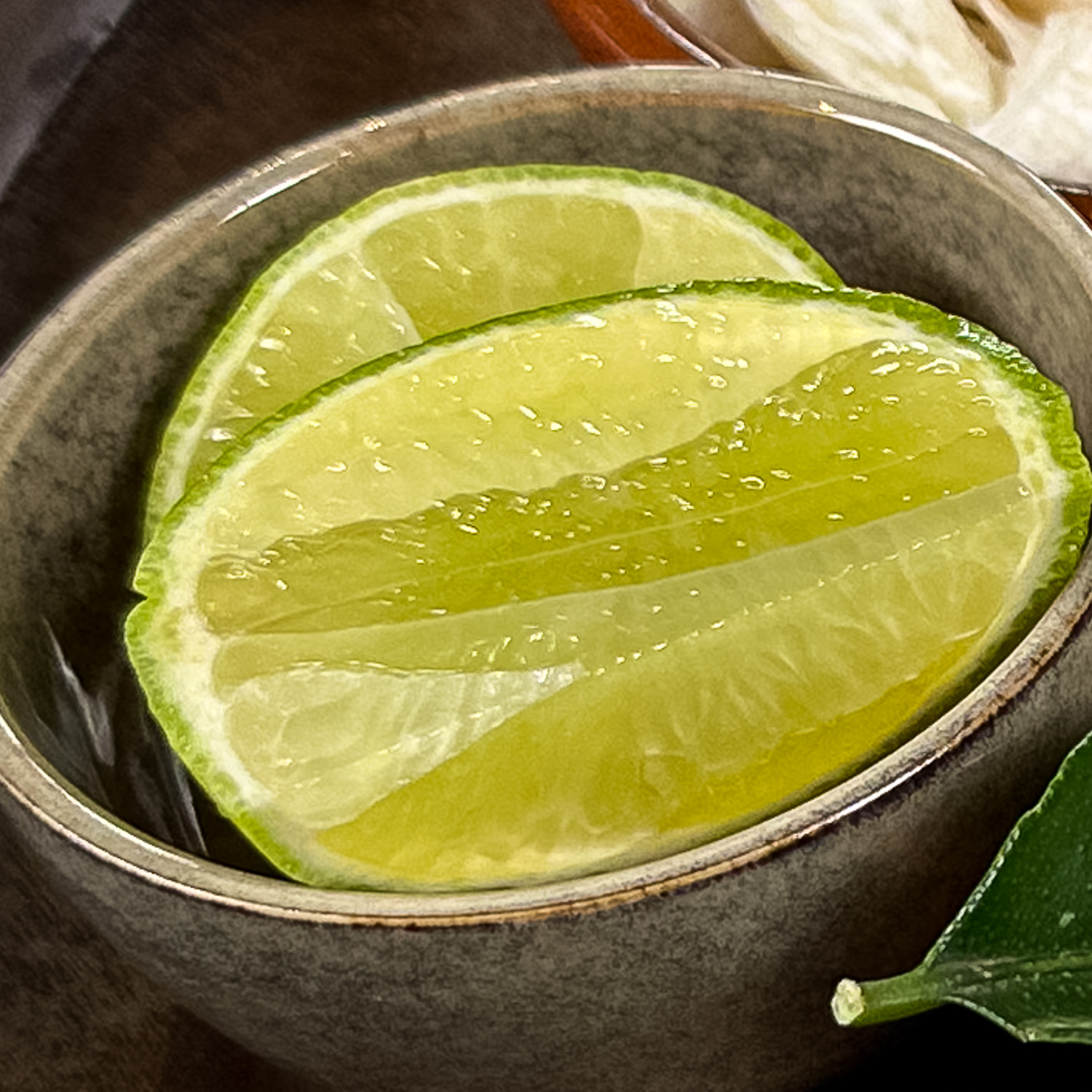 LimeI Tom Yum Gai benyttes både tamarind og lime for syre og friskhet. Tamarind når suppen koker, og lime når varmen er slått av og riktig frisk, lett syrebalanse skal tilpasses.
