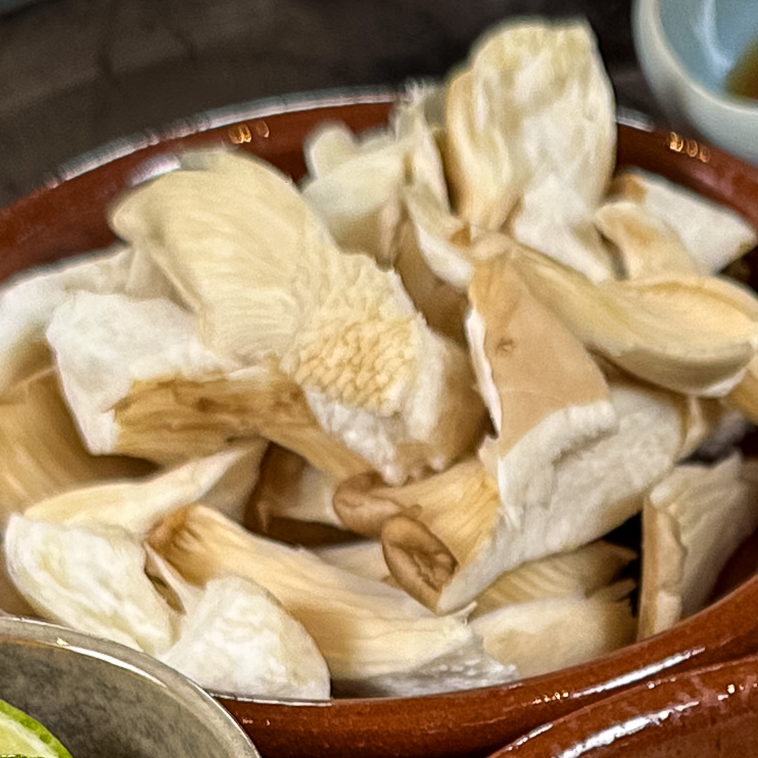 østerssoppI Tom Yum Gai har vi tilsatt sopp og cherrytomater helt på slutten. De skal bare varmes lett, slik at smaken bevares.
